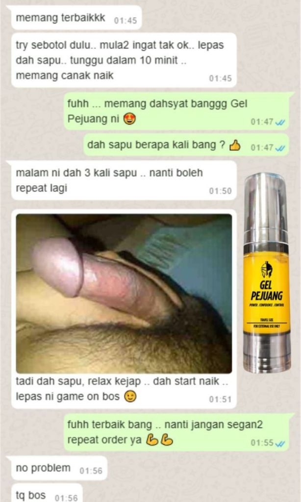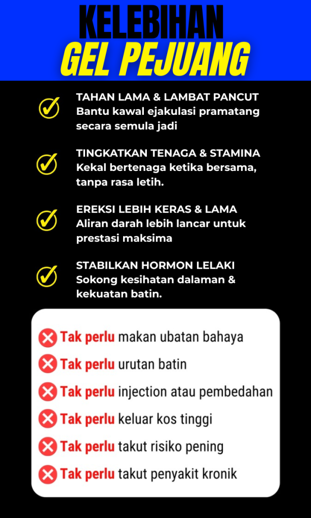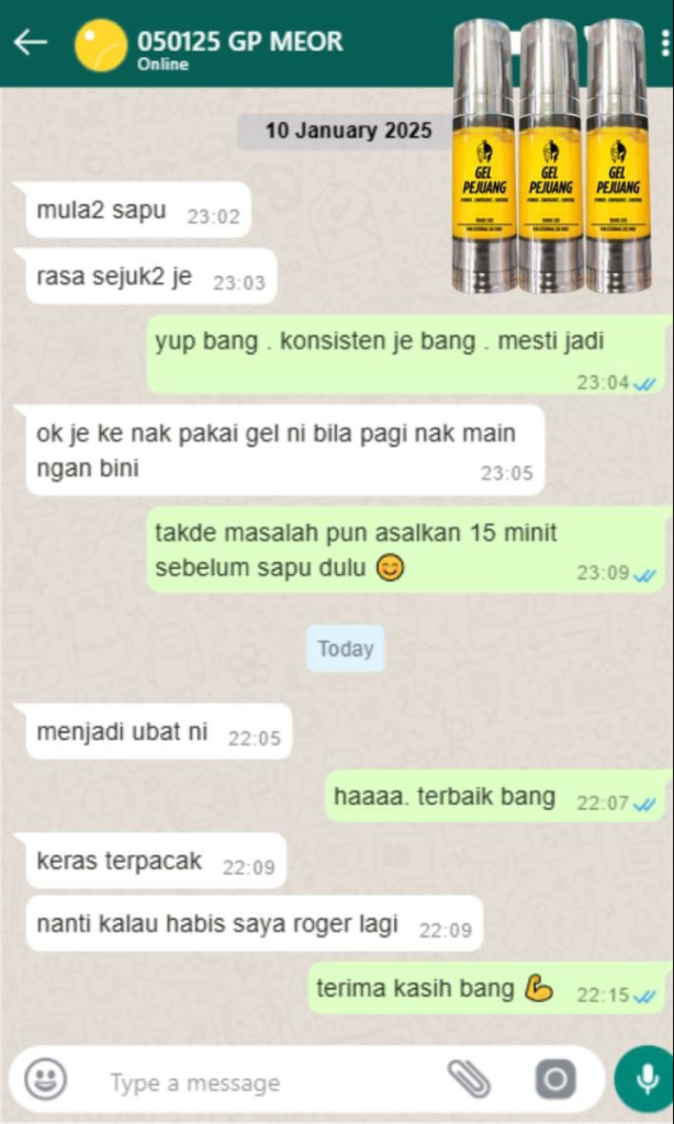 Kesan pengambilan GEL PEJUANG akan nampak seawal 15-30 minit.